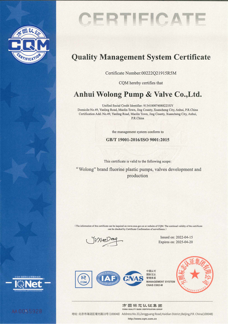 安徽臥龍泵閥股份有限公司位于風(fēng)景秀麗的江南古鎮(zhèn)——安徽省涇縣茂林鎮(zhèn)。公司前身涇縣氟塑料制品廠創(chuàng)建于1985年,是國內(nèi)較早引進(jìn)中科院上海有機(jī)化學(xué)研究所專利材料——"氟塑料合金",并以此耐腐蝕材料專業(yè)生產(chǎn)制造化工泵、閥、襯氟管道等產(chǎn)品的企業(yè)。公司經(jīng)過歷次的改制變革,2015年更名為安徽臥龍泵閥股份有限公司。